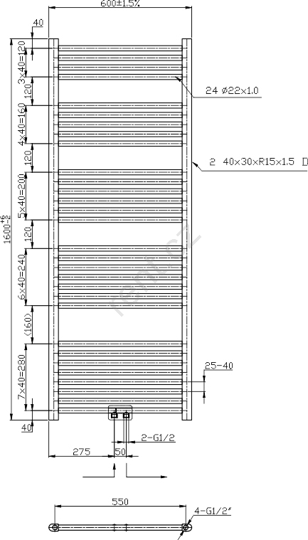 Novaservis - Koupelnový žebříkový radiátor 836W/230V 160x60 cm černá rovný