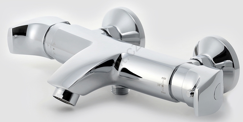 • Termostat na pravé straně, ovládání průtoku vody na levé straně.