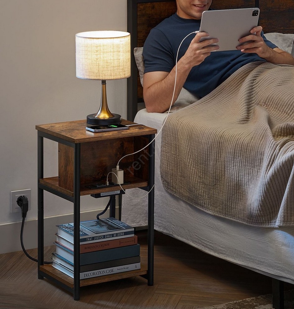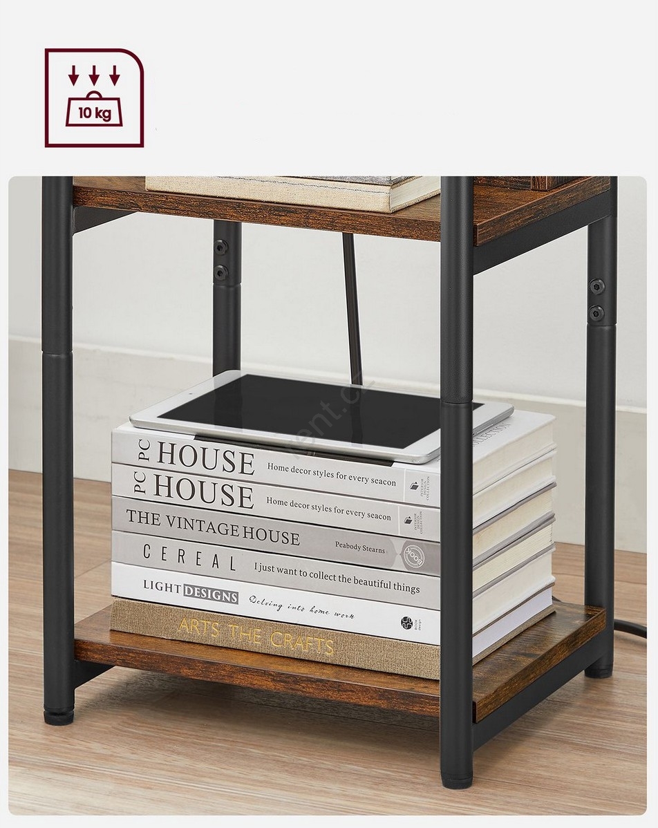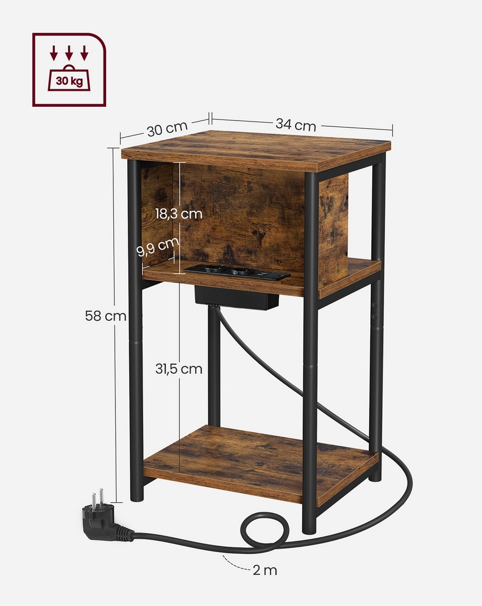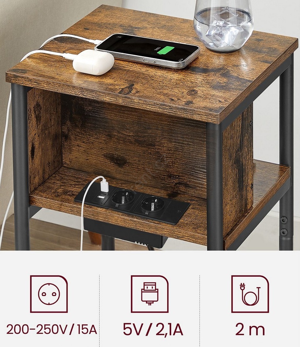 Odkládací stolek s vestavěnými zásuvkami a USB porty ROD 34x30 cm hnědá/černá