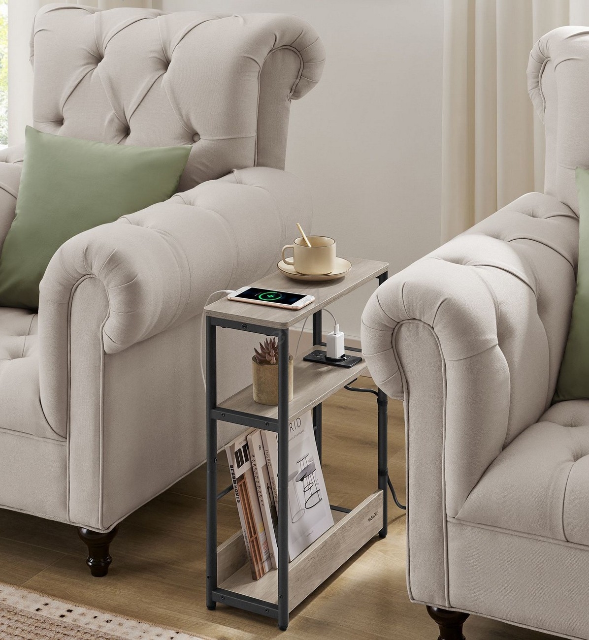 Odkládací stolek s vestavěnou zásuvkou a USB porty ROD 45x18 cm hnědá/černá