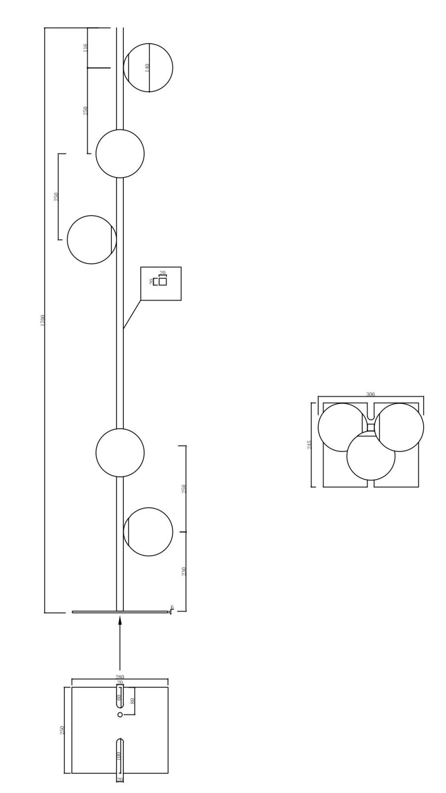 • Ondaluce - Stojací lampa MONILE 5xE14/10W/230V 170 cm černá/kouřová černá
