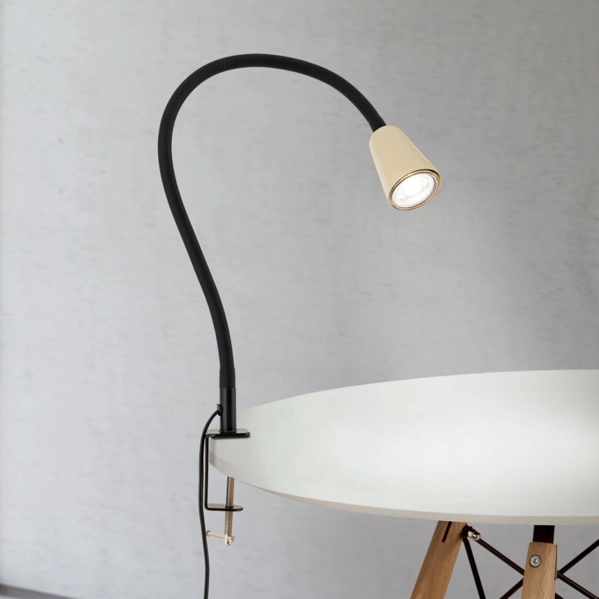 Flexibilní stolní lampa s klipem DOTTY 1xGU10/10W/230V béžová/černá charakterizuje pěkný design a funkční provedení.  Do svítidla je určena žárovka s paticí GU10. Zde si můžete koupit další žárovky za výhodnou cenu. Získáte tak zajímavý doplněk do svého domova.