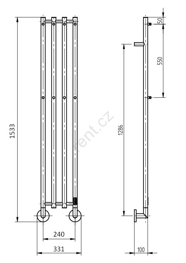 • Elektrický sušák ručníků s nízkou spotřebou energie.