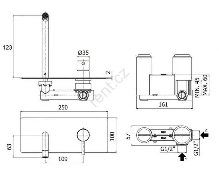 • Podomítková umyvadlová baterie v moderním provedení pro elegantní a minimalistický vzhled koupelny.