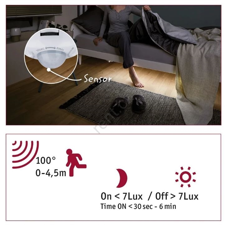 • Jakmile lůžko opustíte, osvětlení se aktivuje čidlem a umožní bezpečný pohyb v místnosti.