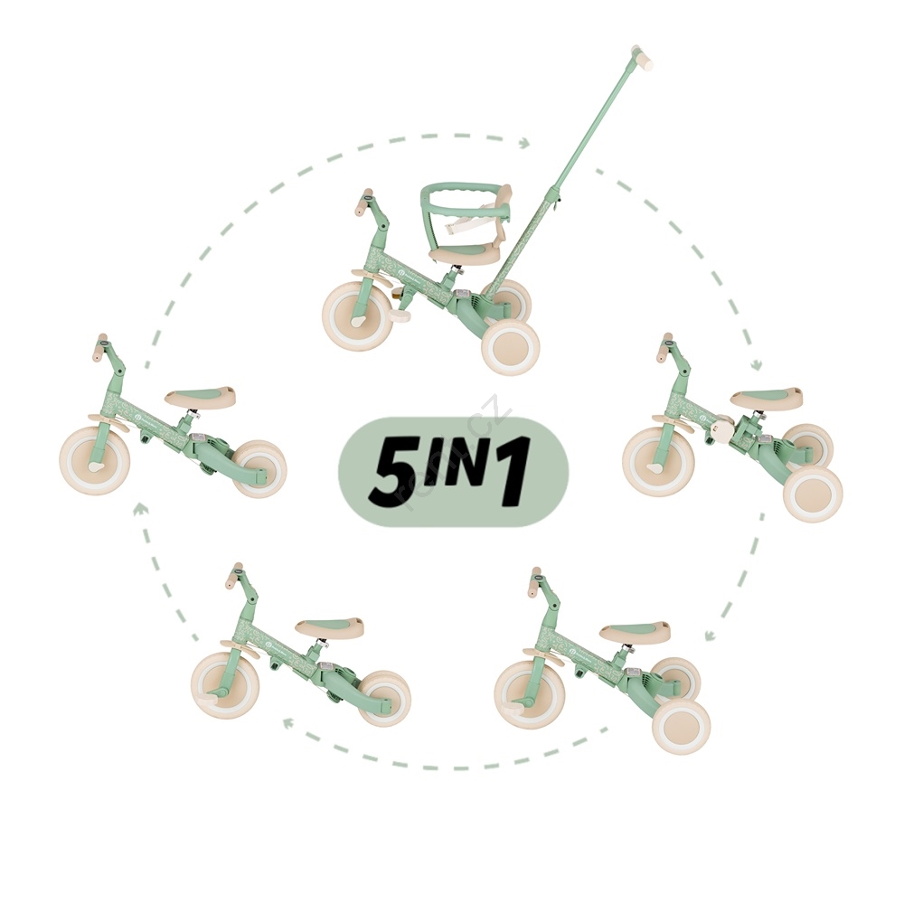 • Multifunkční tříkolka s 5 režimy v závislosti na věku a dovednostech dítěte.