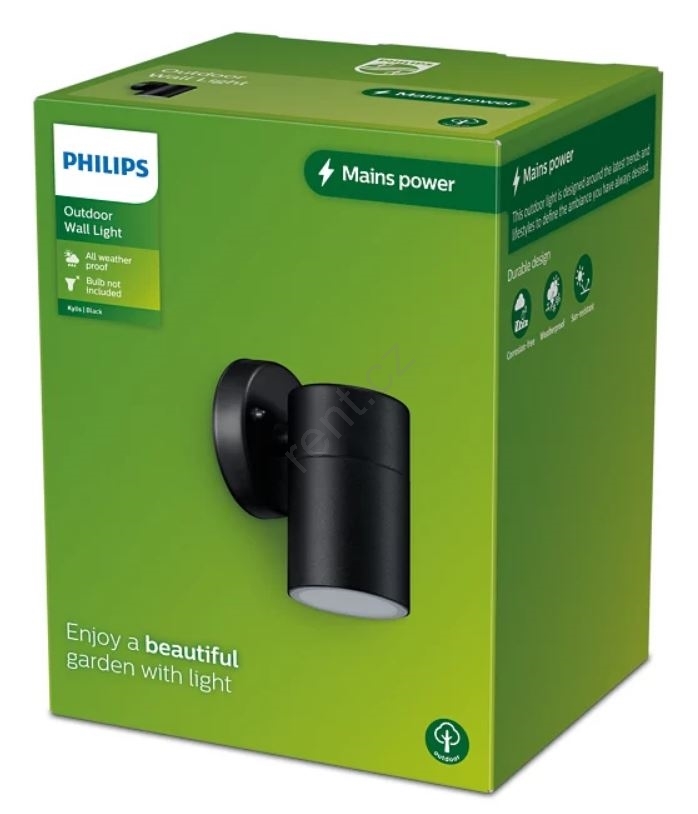 Philips - Venkovní nástěnné svítidlo KYLIS 1xGU10/25W/230V IP44 charakterizuje pěkný design a funkční provedení.  Do svítidla je určena žárovka s paticí GU10. Zde si můžete koupit další žárovky za výhodnou cenu. Získáte tak zajímavý doplněk do svého domova.