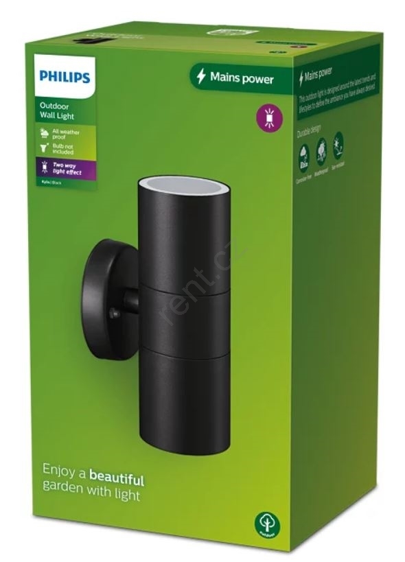 Philips - Venkovní nástěnné svítidlo KYLIS 2xGU10/25W/230V IP44 charakterizuje pěkný design a funkční provedení.  Do svítidla je určena žárovka s paticí GU10. Zde si můžete koupit další žárovky za výhodnou cenu. Získáte tak zajímavý doplněk do svého domova.