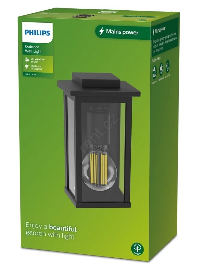 Philips - Venkovní nástěnné svítidlo MIRTH 1xE27/25W/230V IP44 charakterizuje pěkný design a funkční provedení.  Do svítidla je určena žárovka s paticí E27. Zde si můžete koupit další žárovky za výhodnou cenu. Získáte tak zajímavý doplněk do svého domova.