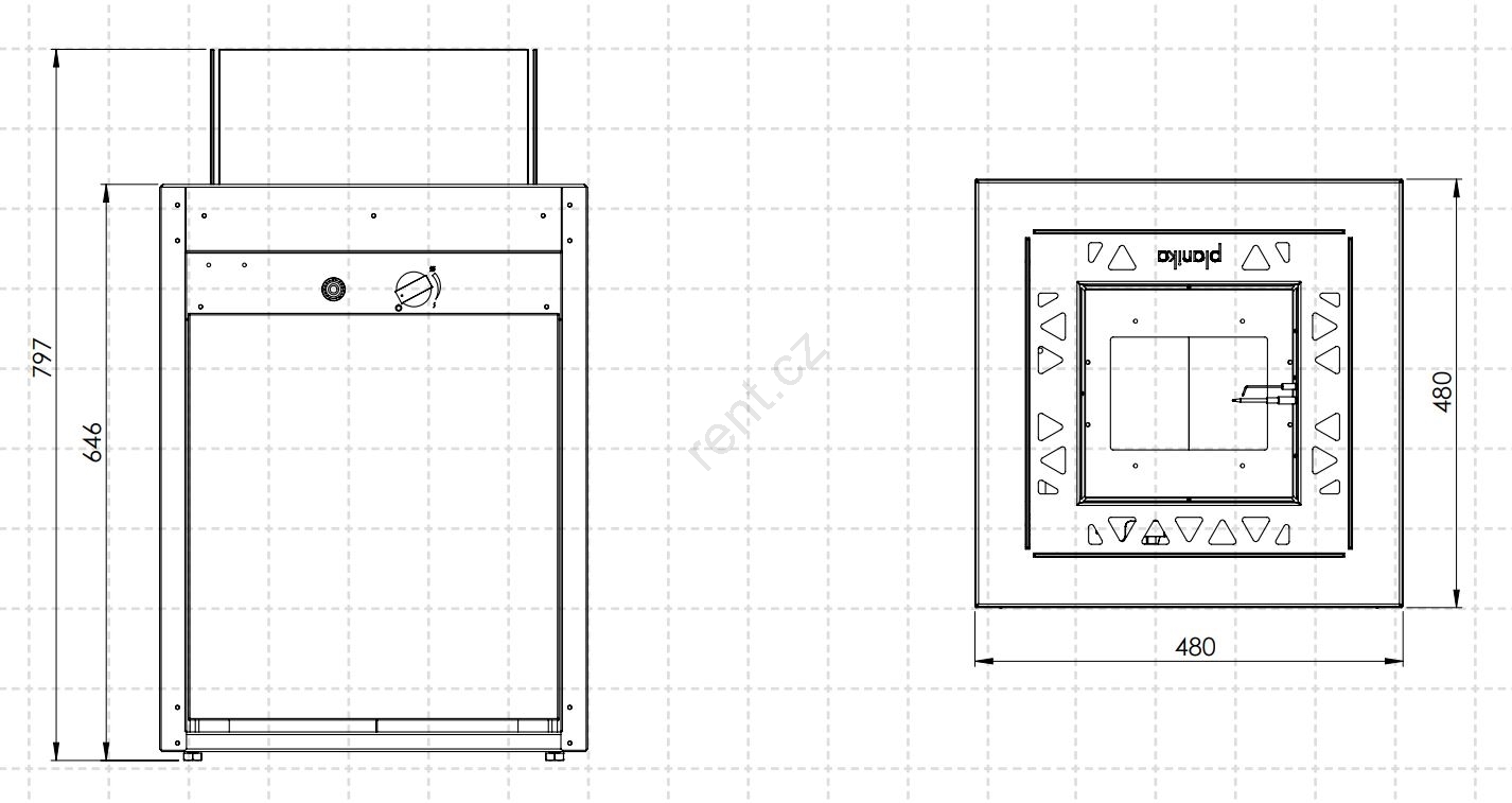 • Konstrukce krbu umožňuje pozorování ohně ze všech stran.
