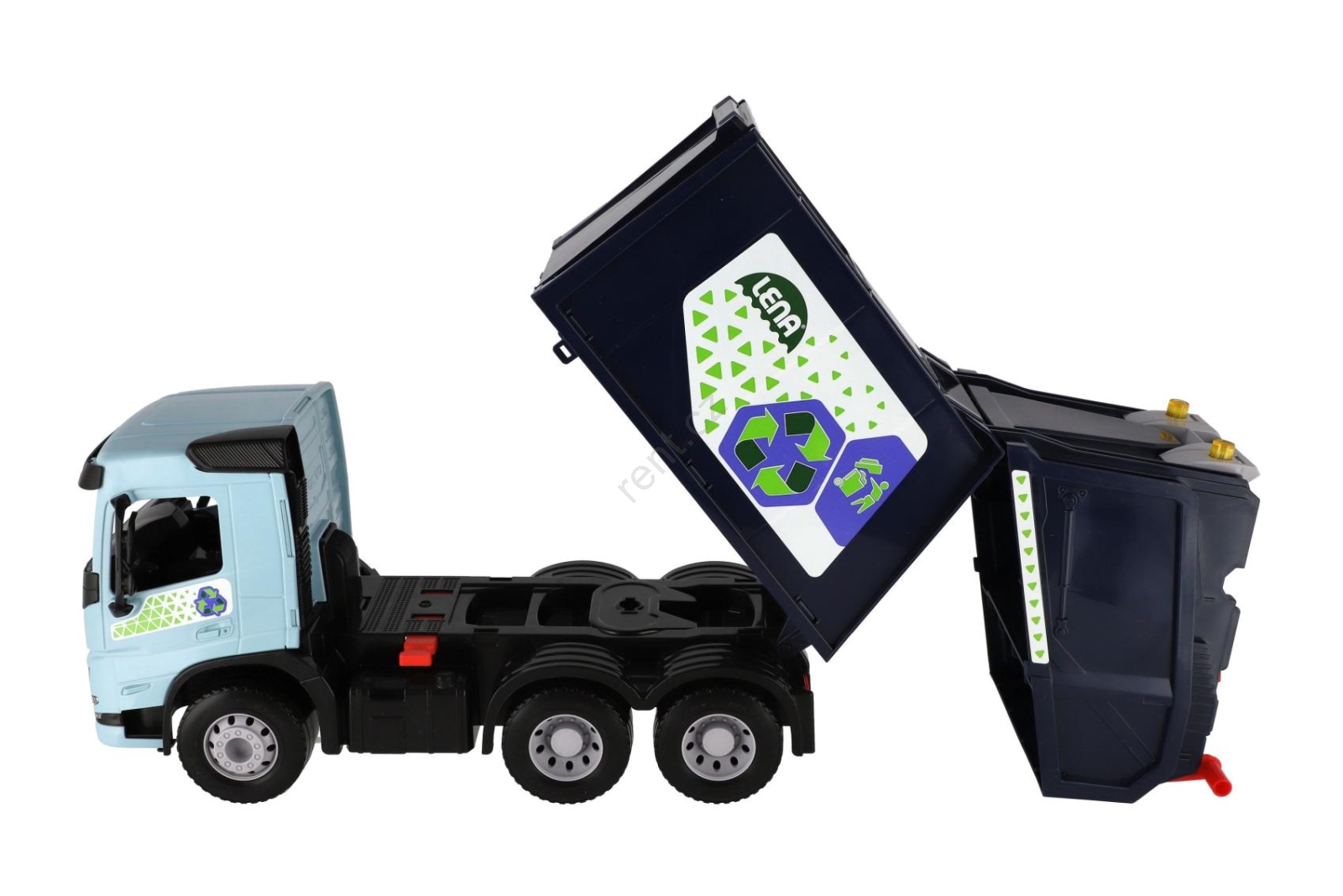 • Plně funkční popelářské auto s odnímatelnou popelnicí a kontejnerem na kolečkách.