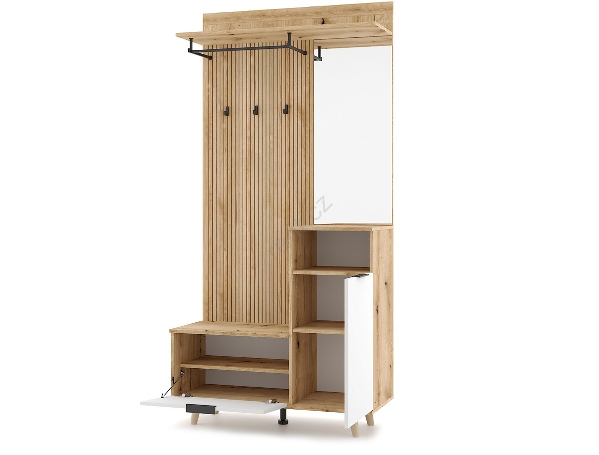 • Otevřená police, háčky, tyč na kabáty a velké zrcadlo nabízí přesně to, co potřebujete.