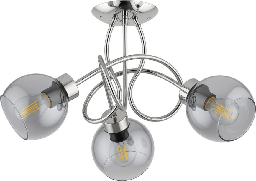 Přisazený lustr HOSSA 3xE27/15W/230V lesklý chrom/černá/kouřová charakterizuje pěkný design a funkční provedení.  Do svítidla je určena žárovka s paticí E27. Zde si můžete koupit další žárovky za výhodnou cenu. Získáte tak zajímavý doplněk do svého domova.
