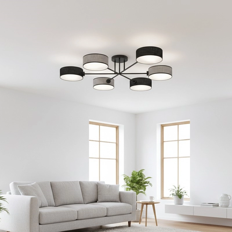 Přisazený lustr MAGA 6xE14/10W/230V černá/šedá
