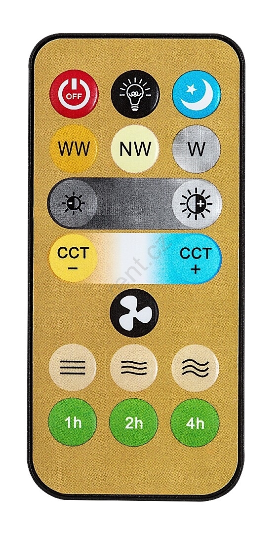 • Pomocí ovladače lze stmívat jas svítidla, upravit teplotu světla, nastavit časovač, zapnout/vypnout ventilátor nebo upravit jeho otáčky.