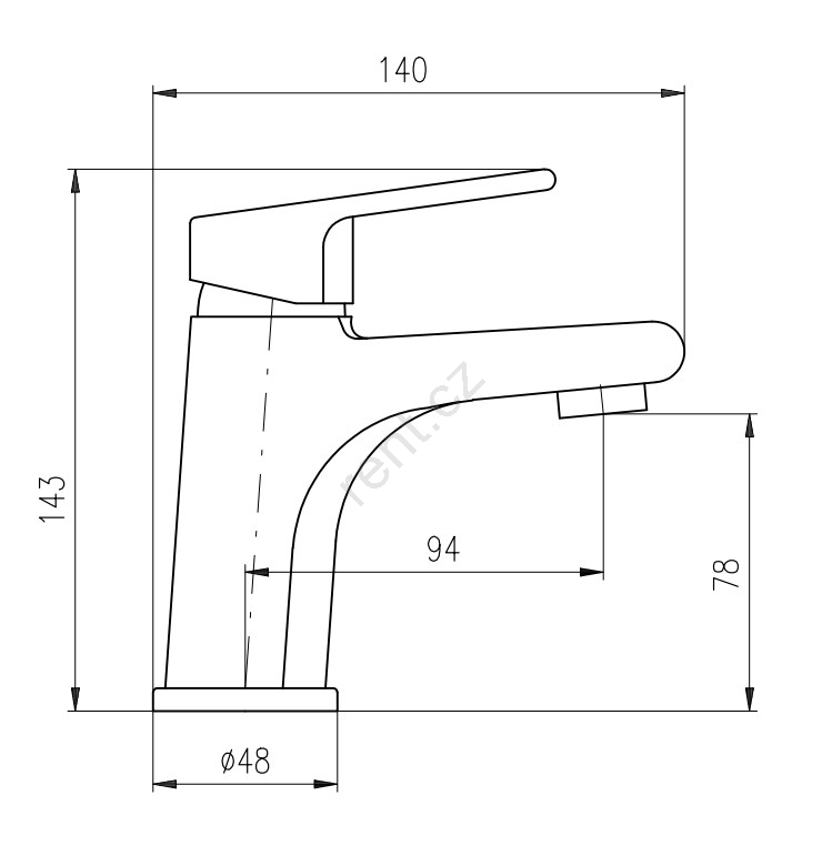 • Vodovodní stojánková umyvadlová baterie bez výpusti.