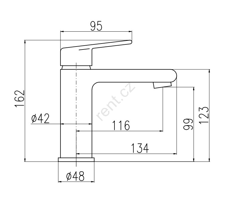 • Vodovodní stojánková umyvadlová baterie bez výpusti.