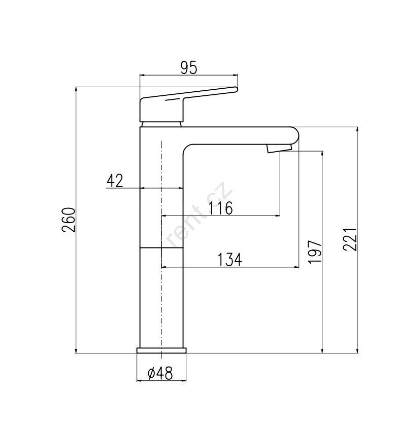 • Vodovodní stojánková umyvadlová baterie bez výpusti.