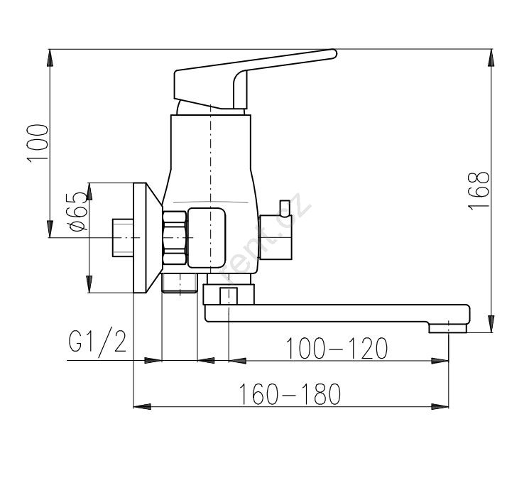 • Vodovodní stojánková vanová baterie s plochým otočným ramínkem.