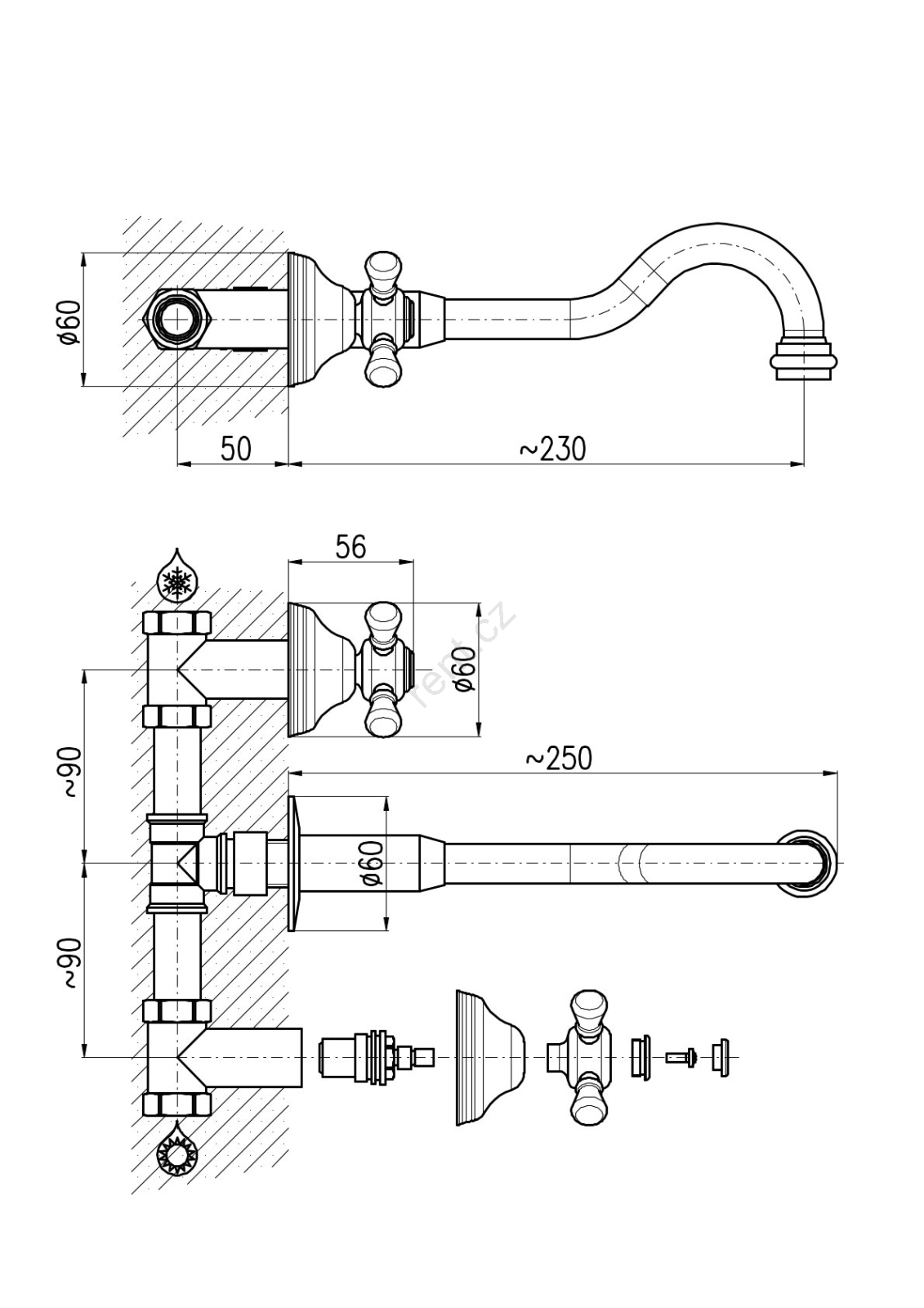 RAV Slezák MK131SM - Umyvadlová baterie pro podomítkovou instalaci MORAVA RETRO stará mosaz