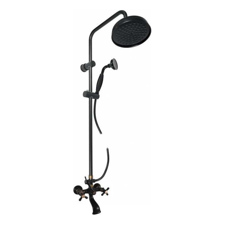 • Součástí balení: kovová ruční sprcha (pr. 76 mm), sprchová tyč s jedním úchytem na zeď (včetně pojezdu pro ruční sprchu a s keramickým přepínačem), kovová hlavová sprcha (pr. 20 cm), sprchová plastová hadice (délka 150 cm), vanová baterie.