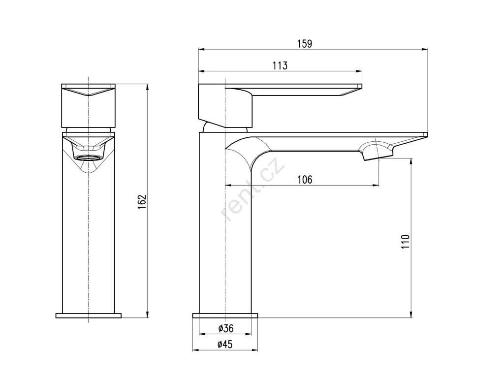 • Vodovodní stojánková umyvadlová baterie bez výpusti.