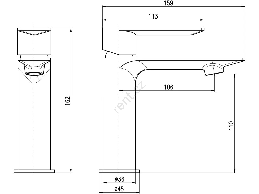 • Vodovodní stojánková umyvadlová baterie bez výpusti.