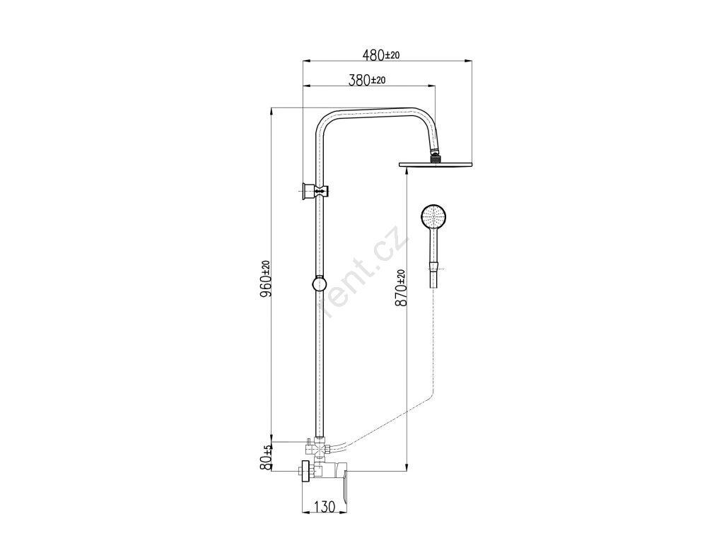• Sprchový nástěnný set s vodovodní baterií.