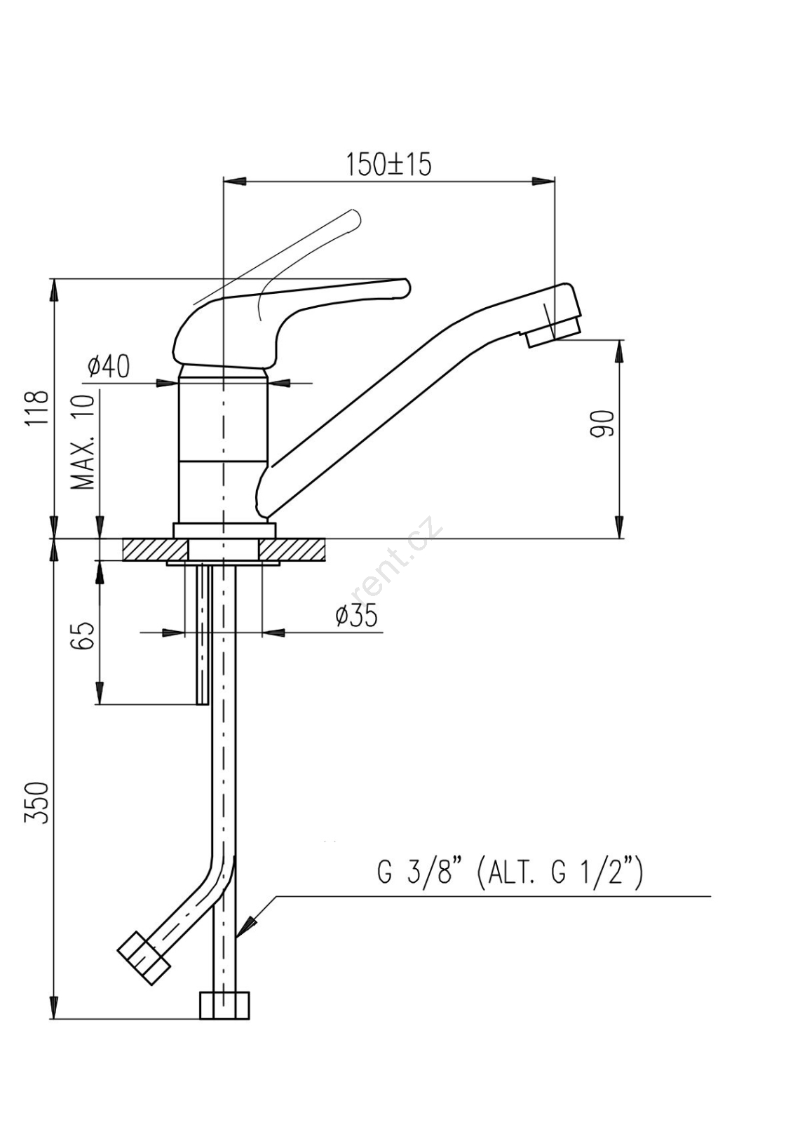 • Vodovodní stojánková umyvadlová baterie bez výpusti.