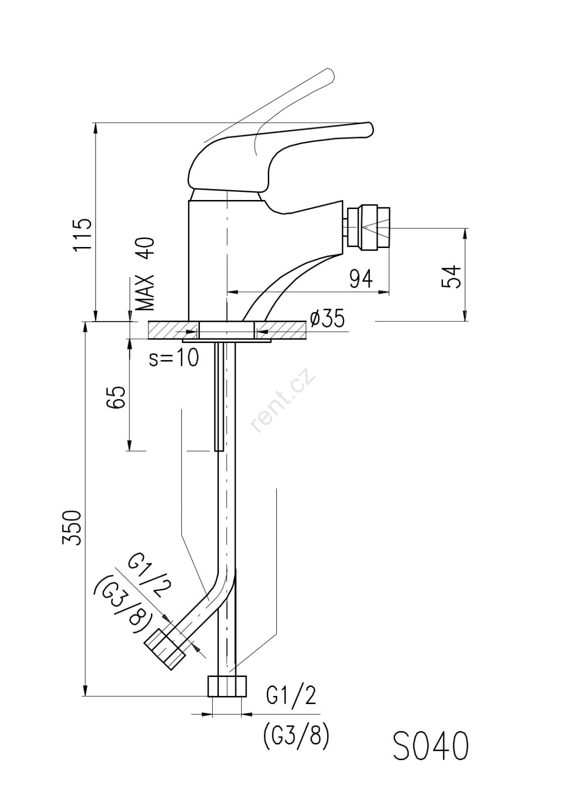 • Vodovodní stojánková bidetová baterie bez výpusti.