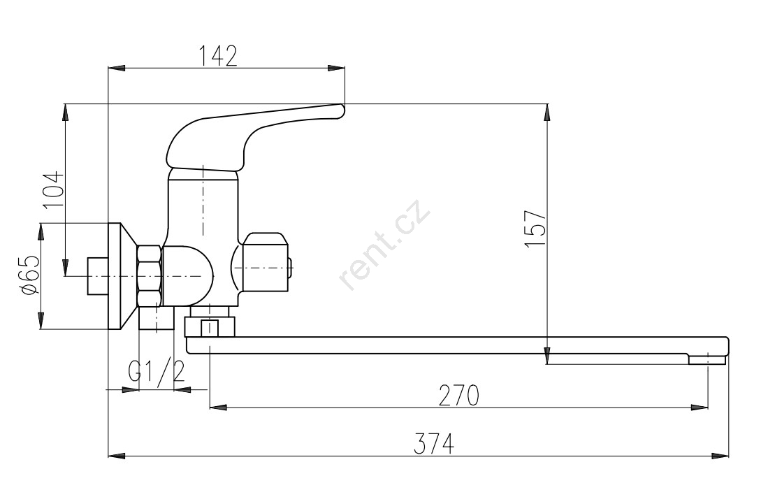 • Vodovodní nástěnná baterie pro vanu a umyvadlo s plochým, otočným ramínkem.