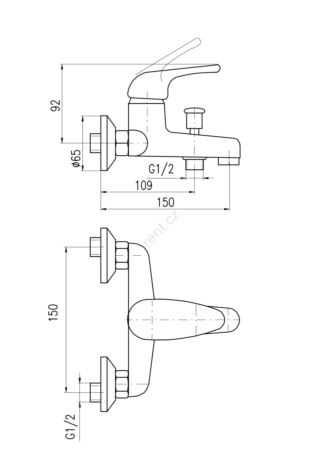 • Vodovodní nástěnná vanová baterie.