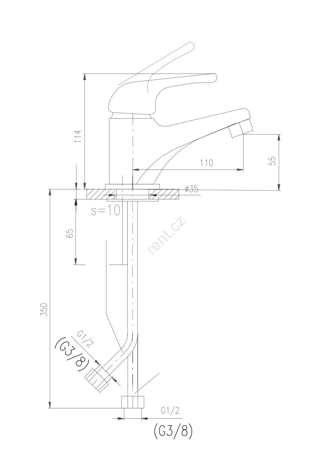 • Vodovodní stojánková umyvadlová baterie bez výpusti.