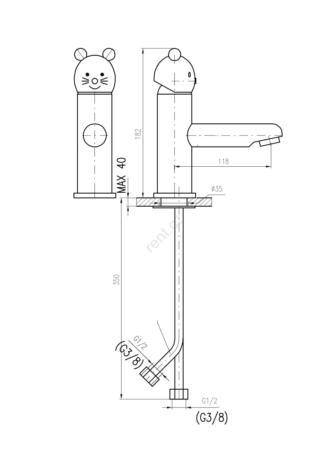 • Vodovodní stojánková umyvadlová baterie bez výpusti.