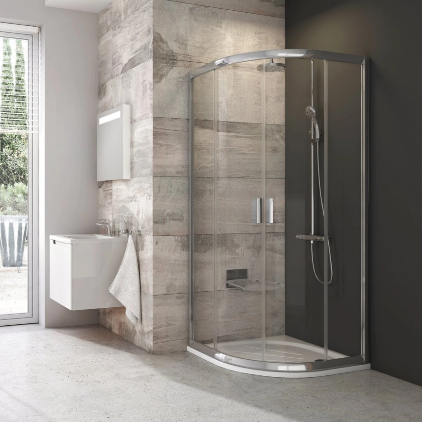 • S poloměrem 550 mm a výškou 190 cm poskytuje dostatek prostoru pro pohodlné sprchování, aniž by působil robustně.