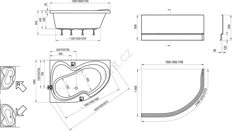• Rozměry 170 x 105 cm poskytují dostatek prostoru pro relaxaci i pohodlné sprchování.