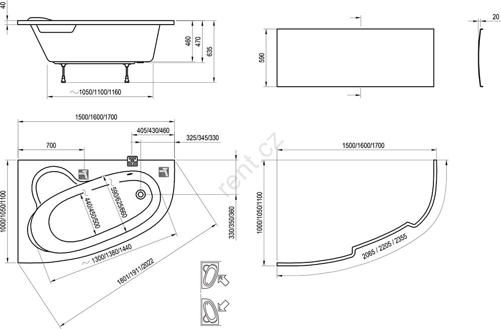 Asymetrické vany, Koupelna, Ravak, Rohové vany, Vany, Značky