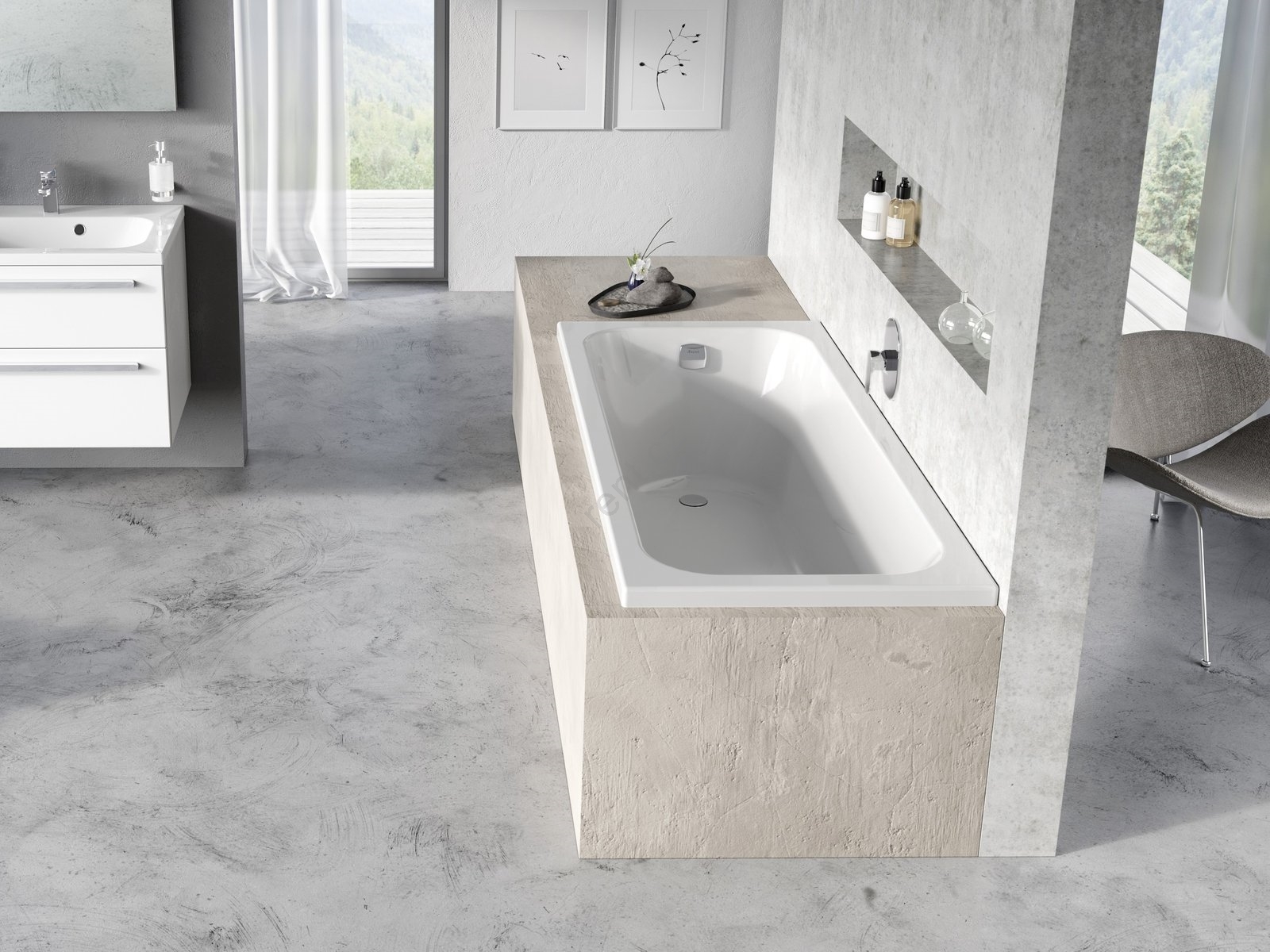 • K dispozici jsou také doplňky jako čelní a boční panel, podpůrná konstrukce a vanový odtokový komplet.
