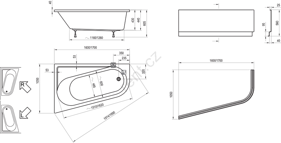 • Pravé provedení umožňuje orientaci směrem do prostoru koupelny, čímž opticky zvětšuje místnost a vytváří příjemný pocit otevřenosti.