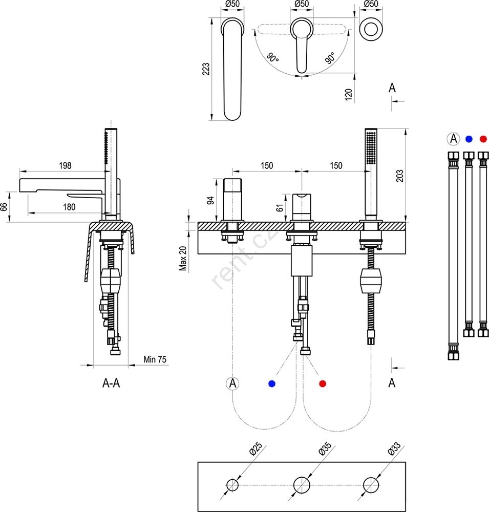 • Tato 3-otvorová vanová baterie je elegantním doplňkem každé koupelny.