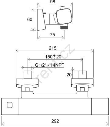 • Rozteč 150 mm umožňuje instalaci ke všem sprchovým koutům.