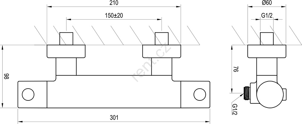 • Rozteč 150 mm umožňuje instalaci ke všem sprchovým koutům.