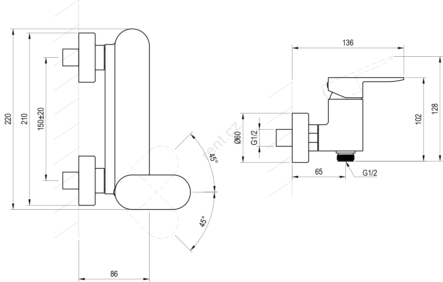 • Baterie je určena k instalaci do sprchových koutů Chrome i ke všem ostatním sprchovým koutům Ravak nebo jiným s jednou sprchou.