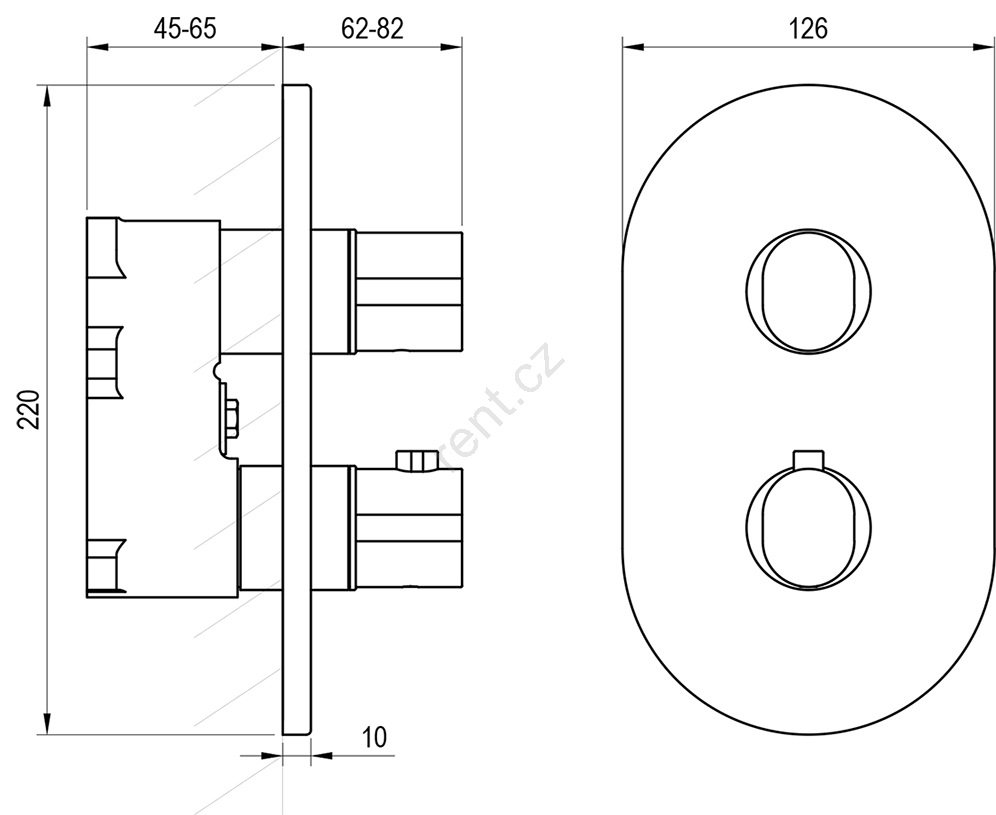 • Termostatická podomítková 2cestná baterie Chrome II v elegantním chromovém provedení je určena pro montáž do instalačního tělesa.