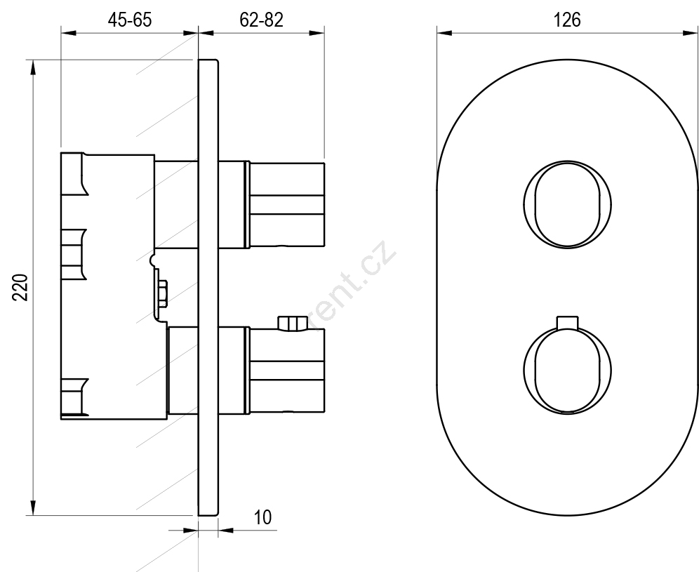 • Termostatická podomítková 3cestná baterie Chrome II v elegantním lesklém chromovém provedení je určena pro montáž do instalačního tělesa.