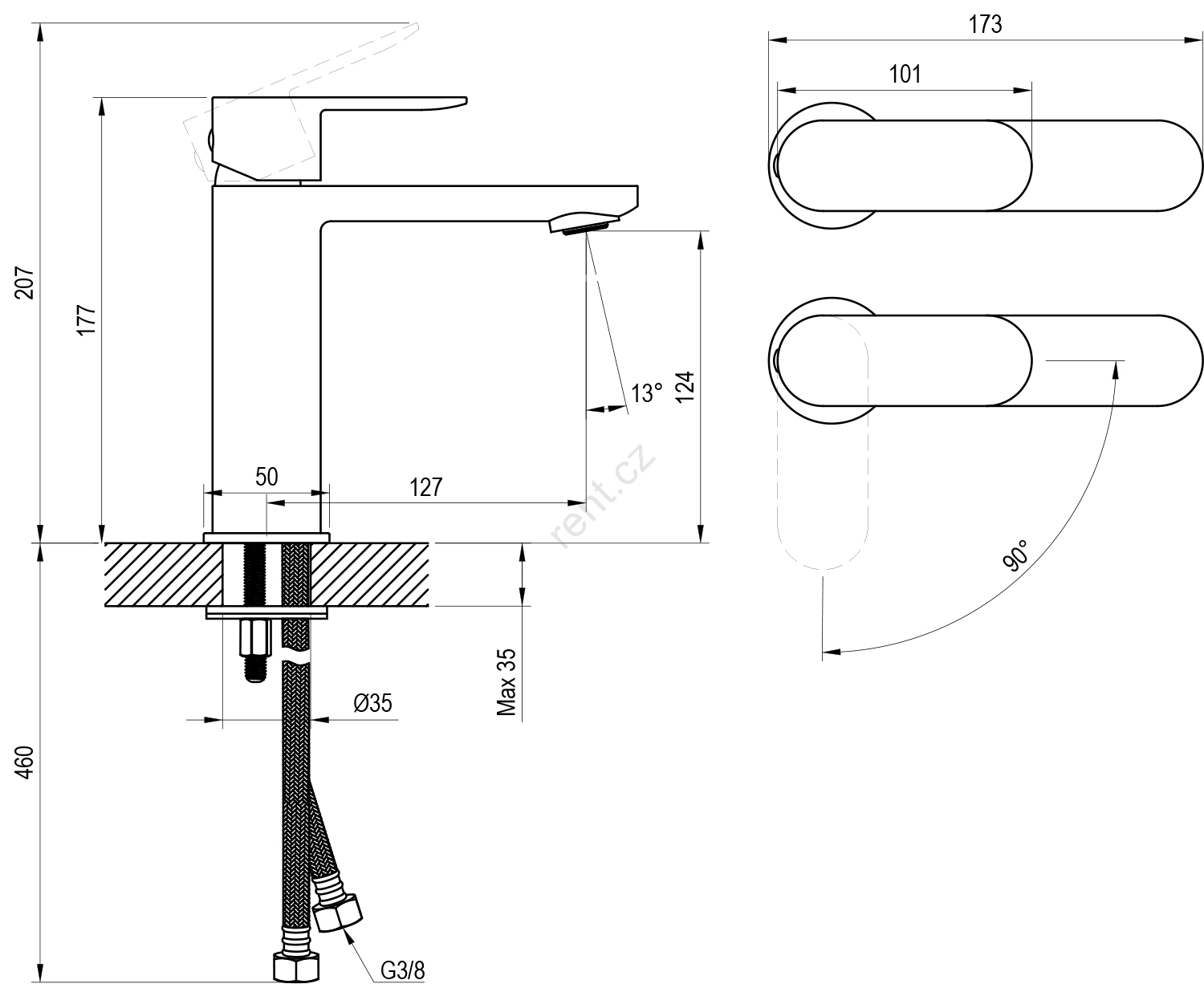 • Součástí jsou flexibilní připojovací hadičky o délce 450 mm s průměrem G3/8.