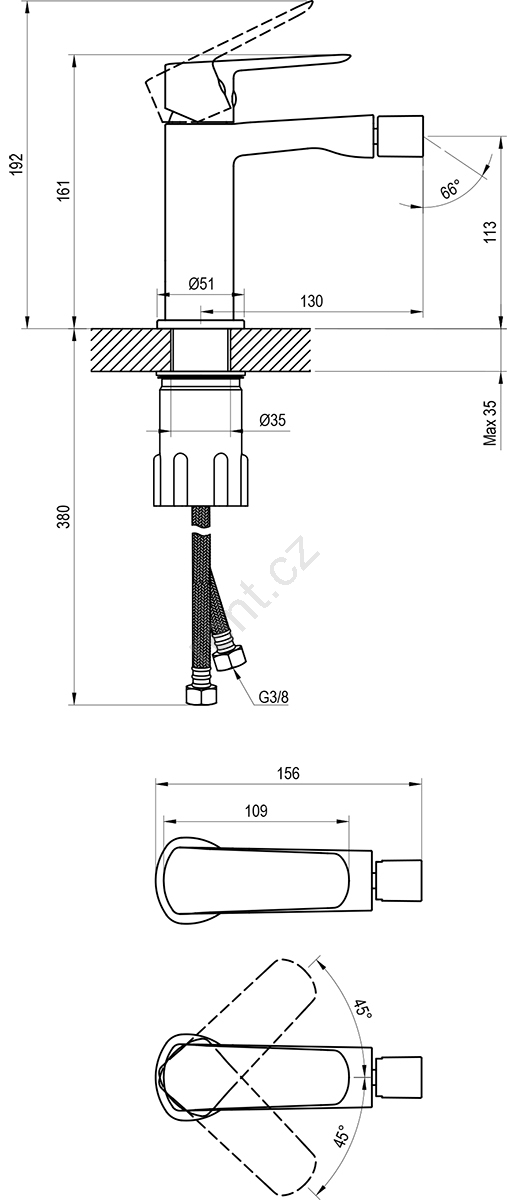 • Připojovací hadičky: flexibilní 450 mm, průměr G3/8.