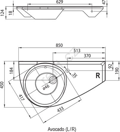 • Rozměry umyvadla jsou 85 x 45 cm, což umožňuje jeho instalaci i do užších prostor, například nad vanu Avocado.