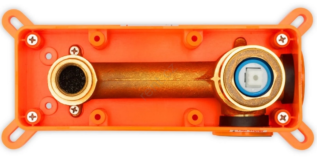 • Montáž do zdi pomocí systému BOX – plastový modul s mosaznými vnitřními prvky.