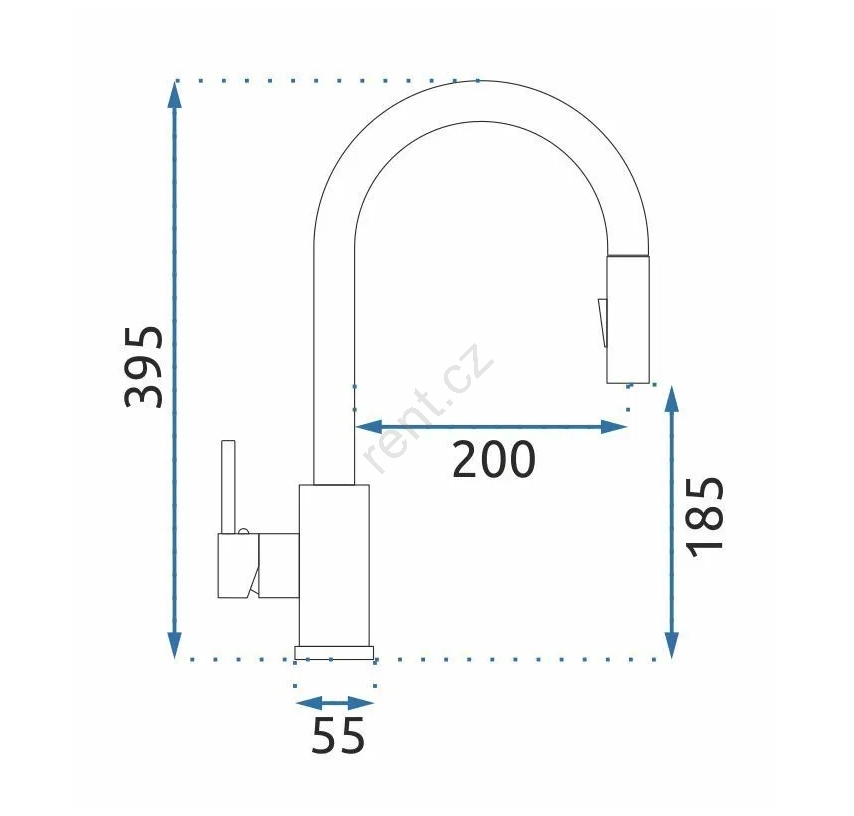 • Jednopáková kuchyňská baterie s vysokým tlakem a otočným ramenem.